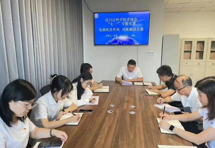 为庆祝中国共产党成立104周年,切实传递党中央、省委、市委和区委对全体党员的关心关爱,营造浓厚庆祝氛围,达川区科学技术协会开展了“七一”主题系列活动。 专题党课