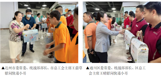 达州市委常委、统战部部长、市总工会主席王蔚荩到通川区为一线“快递小哥”送清凉