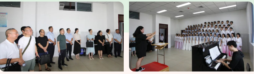 进入达川中学三里校区正大门,专家们观看展板、听取讲解,了解学校基本情况、校园文化、校园布局、办学特色等。在无人机室,同学们向专家组用心展示平时的训练成果,现场编程,按规程操作无人机。在高一年级组教研室,教务主任王莉向专家们介绍了智慧课堂、教师赛课、教学教研、培优补差、班级间博弈等情况。在综合楼实验室,专家组现场查看了理化生实验室,了解实验室安全管理、实验器材和药品管理、废弃物品处置等情况。在武术散打训练基地,同学们展示了达州市非遗项目法门武术和散打,专家们对学生在各级各项赛事中获得的众多奖项表示赞赏。在综合楼三楼,专家组先后观看了女生群舞、男生群舞和声乐表演,不时予以掌声肯定。在综合楼四楼,专家组先后观看了书法、绘画、剪纸、扎染、雕塑等作品展。各类展示给专家组留下了深刻的印象,专家组成员认真观看表演,不时驻足观看,相互交流,不时现场讨论,赞叹不已。有个专家还拿出手机拍摄,说“这个表演得太好了,我得做个短视频分享给大家”。