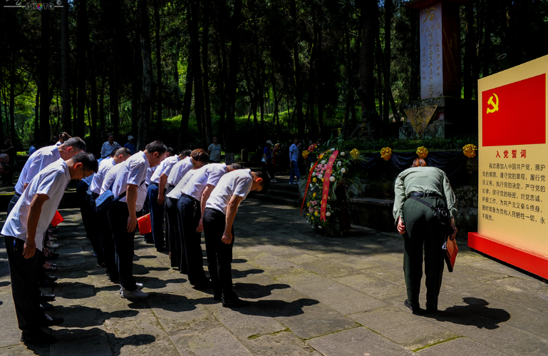 在川陕革命根据地红军烈士陵园,全体党员从铁血丹心广场沿千秋大道台阶而上,认真聆听讲解员讲解革命先辈在川陕革命根据地浴血奋战的峥嵘岁月。在红四方面军英勇烈士墓前,全体党员整齐排列,肃穆默哀,拜谒革命先烈,向人民英雄敬献花篮,表达对英雄和烈士的深切缅怀与崇高敬意。同时,组织全体党员重温了入党誓词、聆听了王建刚老人“微党课”,接受了一次深刻的爱国主义、革命传统和党性教育。随后,在川陕革命根据地红军烈士纪念馆进行了参观学习,真切感受老一辈革命家在艰难困苦环境下,坚持依靠群众、发动群众、扎根群众,保持与群众血肉联系的优良作风、发扬“智勇坚定、排难创新、团结奋斗、不胜不休”的红军精神,激励全体党员传承红色基因,提升自身修养。