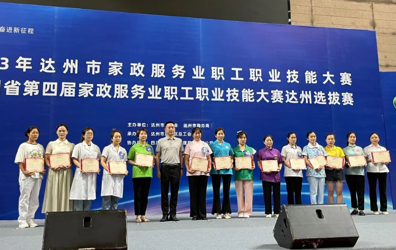 7月14日,达州市家政服务业职工职业技能大赛在达川区体育馆举办,经过激烈角逐,通川区代表队1名选手获三等奖,4名选手获优秀奖,通川区总工会获优秀组织奖。