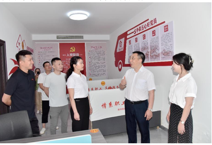 在货车司机大本营,叶祥金与达石快速项目施工人员、货车司机亲切交谈,详细了解他们的生活情况、工作状况、意见建议和存在的困难,为他们送上清凉物资,叮嘱他们注意防暑降温和身体健康。叶祥金指出,区总工会以货车司机实际需求为导向,建设了货车司机大本营户外劳动者服务站点,设有职工之家、自助厨房、休息区、沐浴区、自助用餐区、小商品销售区、货源查询区等功能分区,为广大货车司机提供了避暑纳凉、饮水休息、长途借宿、学习教育等服务,满足了其休闲、工作、生活等全方位需求,接着,还要加大宣传,在提高站点的知晓率和使用率上下功夫,做好站点的管理、运营等各项工作。