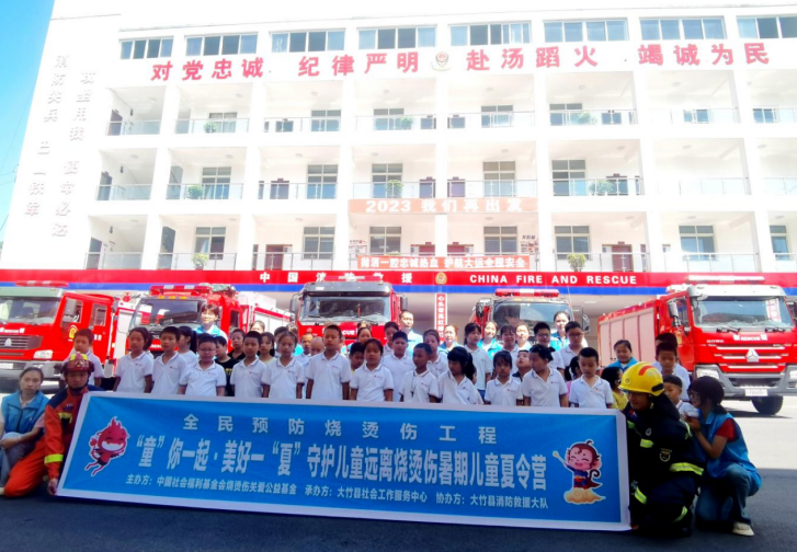 暑期将至,属于儿童烧烫伤的高发期,为了守护儿童安全,为孩子们送上一份爱的守护,在中国社会福利基金会烧烫伤关爱公益基金支持下,2023年8月3日,大竹县社会工作服务中心走进了大县消防救援大队开展“守护儿童远离烧烫伤”暑期科普活动。