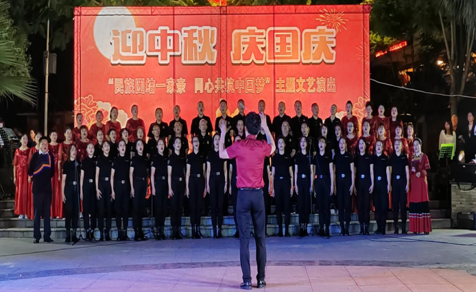 晚会,在新启点乐团带来的《歌唱祖国》 《我爱你中国》器乐合奏中开幕。先后相继表演了大合唱《彝唱山叹》 《敖包相会》、舞蹈《再唱山歌给党听》、彝族乐器联奏《阿莫阿达古》 《我行我可以》、男女声二重唱《共筑中国梦》、电吹管合奏《花好月圆》 《芦花》、男声独唱《等待》、萨克斯合奏《云中月圆》 《今夜无眠》、舞蹈《你的生命如此美丽》、女声小合唱《我的祖国》、女声独唱《红旗飘飘》等21个精彩纷呈的节目。其中,《再唱山歌给党听》表达了对中国共产党的热爱之情;《歌唱祖国》 《我爱你中国》 《我的祖国》 《红旗飘飘》表达了热爱伟大祖国的情怀;《彝唱山叹》赞颂了家乡之美;《阿莫阿达古》表达了对父母的思念之情;《敖包相会》 《花好月圆》 《云中月圆》 《今夜无眠》表达了花好月圆、共度中秋佳节的美好景象。特别是由彝族亲姐弟领唱的大合唱《彝唱山叹》和本土彝族男高音歌手演唱的《等待》及女声独唱《红旗飘飘》,气势恢宏,震撼人心。
