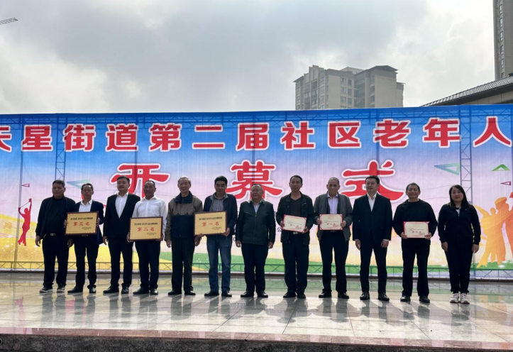 天星街道党工委书记黄云明指出,近年来,为深入学习贯彻习近平总书记关于老龄工作和体育工作的重要指示精神,街道高度重视老年体育工作,建立健全老年人体育政策、丰富老年人赛事活动、扩大老年人场地设施供给、健全老年人体育组织、加强老年人科学健身指导,持续推动老年人体育工作高质量发展。一是强化保障。街道建设新时代文明实践中心、实践广场、社区老年活动中心、业主驿站、“红色邻里中心”等活动场所、购置书籍和健身器材等,全街道、村(社区)老年体育工作基本实现“六有”,有组织、有场地、有经费、有骨干、有活动、有制度。二是重视需求。老年体育组织上以“重在基层,面向全体”为工作方针,鼓励发展多种类型的老年人体育组织,指导社区以“支部+党员+社团”组建星光太极队、舞蹈队、川牌队等20多个兴趣社团,满足老年人的不同健康需求,开展适合老年人的文体活动。三是形成合力。工作格局上,建立完善了“党政主导、部门尽责、协会组织、面向全体”的老年人体育工作格局,加强与民政、财政、文化体育旅游、卫键委、老体协、工会、妇联等有关部门的沟通合作,及时协调解决老年人体育发展中的实际困难和问题。四是开拓创新。以老年活动室等文体阵地为依托,通过对各类老年人文体团队的指导,文体骨干的传、帮、带,抓好业余老年体育队伍的建设和培养,全街道老年人体育队伍不断壮大,全街道全街道组建各种文娱体育兴趣社团队伍20多个,参与老年人500余人,利用元旦、春节、三八妇女节、国庆节、重阳节等重要节日,组织开展丰富多彩的老年人健身活动。五是加强交流。广泛开展老年健身赛事、社区运动会等群众身边的赛事活动,充分发挥老协和社区兴趣社团等群众身边组织的作用,不断创新活动方式,打造各具特色的老年人品牌健身活动,为老年人进行比赛、表演、交流提供机会,老年体育队伍多次获得市、县比赛好成绩。