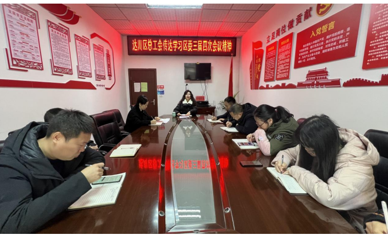 1月10日,达州市达川区总工会召开专题会议,传达学习区三届四次党代会精神,研究贯彻落实意见,部署2024年达川工会工作。区总工会党组书记、副主席吴婷婷主持会议。
