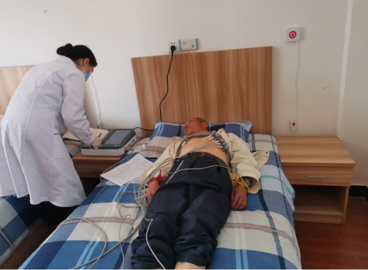 在活动过程中,医护人员亲切地的和老人们进行沟通,询问日常生活中是否有身体不舒服的地方,结合老人的身体现状,针对性进行诊疗。对部分长期卧床的老人,医疗人员还携带医疗设备仔细为老人检查是否有卧疮,肌肉萎缩等疾病,尽显他们的专业素养和人文关怀。
