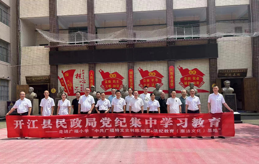 “红色教育”强使命。县民政局组织全体机关党员前往广福小学参观“中共广福特支史料陈列室+法纪教育(廉洁文化)基地”,通过参观珍贵的历史遗物和图片影像资料,重温红色记忆,感悟红色力量,进一步增强全体党员历史责任感和使命感,激发大家的爱国热情和干事创业的激情。
