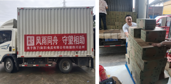 7月15日,果子熟了(南京)食品有限公司积极践行社会担当,主动向达州市通川区总工会捐赠500件饮料慰问物资,为坚守在防汛一线的工作人员和户外工作的劳动者带来温暖的关怀和有力的支持。