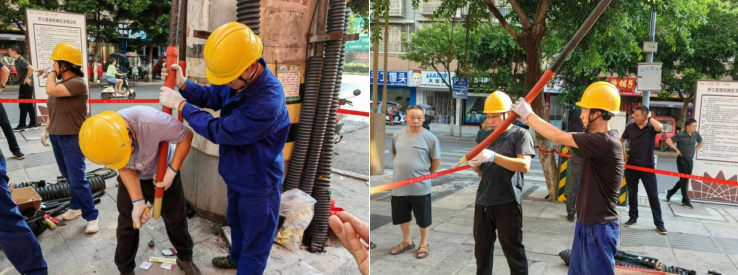 施工现场,电力工人克服高温天气,尽管汗水不停从脸颊滑落,湿透了衣衫,他们都顾不上擦拭,专心投入工作之中。过路群众说:“这电不是供得好好的吗,怎么还在这里弄?”是啊,正是因为要供好电,我们的电力职工才这样辛勤劳作。
