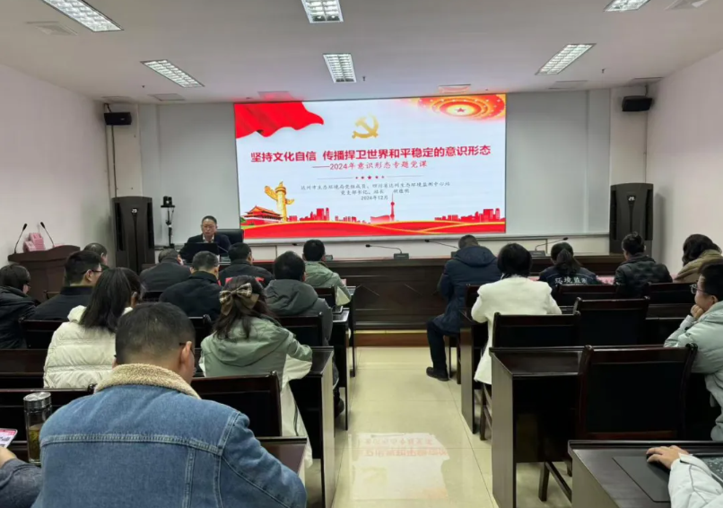 为更好地深学细悟习近平文化思想丰富内涵,增强文化自信,切实担负起新的文化使命,12月25日上午,四川省达州生态环境监测中心站党支部书记、站长胡蕴明同志以“坚持文化自信、传播捍卫世界和平稳定的意识形态”为题为全体干部职工讲授了一场生动而深刻的专题党课。 党课中,胡蕴明紧扣和平文化核心主题,以文化的内涵与作用为切入点,结合中华民族的发展历史,引经据典,深入浅出地阐述了和平文化的深远影响,进一步加深了全体干部职工对和平文化重要性的认识。他表示,和平文化是中华民族优秀传统文化的重要组成部分,中国是世界和平的坚定维护者和捍卫者,和平思想已深入人心,早已嵌入中国人民的遗传基因,从“一带一路”到“人类命运共同体”都对维持世界和平稳定具有十分积极的作用。