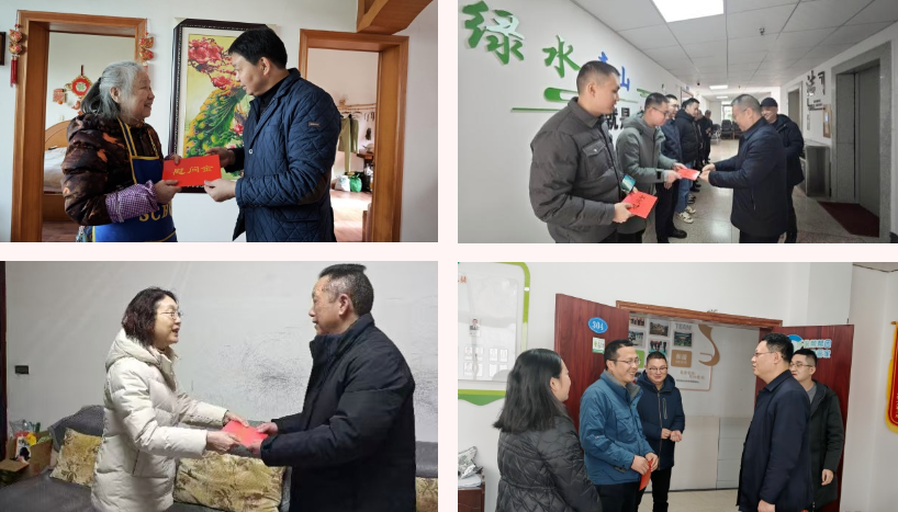 节前安全检查 为确保春节期间辖区生态环境安全,进一步预防环境风险隐患,1月23日至27日,达州市生态环境局组织开展全领域、分行业安全生产检查。 党组书记、局长马淞铃陪同省、市领导对主城区工业企业落实应急减排、治污设施运行等情况进行了现场检查,并做出工作提醒,要求持续强化安全风险意识、压紧压实安全生产主体责任,杜绝环保设施安全隐患,守牢生态环境安全底线。市局领导成员、各派出局分管负责人重点检查了污水处理厂设施运行、垃圾填埋场运维管理、饮用水源地保护以及企业安全生产、危险废物处置等情况。 节前走访慰问 在春节来临之际,达州市生态环境局组织成立慰问组对全系统优秀干部职工、困难党员和退休老干部开展慰问活动。对职工代表和困难党员的慰问中,慰问组对他们过去一年为全市生态环境保护做出的贡献表示肯定,希望他们继续保持昂扬向上的精神状态,履职尽责,为达州的环保事业贡献更大力量;对退休干部的慰问走访中,慰问组与他们亲切交谈,送去组织的关怀与温暖,感谢他们为单位建设和发展做出的贡献,叮嘱他们保重身体,并致以诚挚的新春问候与美好祝福。 受慰问的干部职工代表和退休老同志对市局党组和局领导的关心慰问表示感谢,他们纷纷表示,相信在局党组的坚强领导下,在全局干部职工的共同努力下,达州的生态环保事业一定会再上新台阶。
