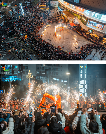 非遗舞火龙, 独属于中国新年的非遗浪漫。为响应文旅融合与传统文化复兴号召,2025年元宵节期间,达州仁和新城商场举办“烟火舞龙闹元宵,仁和新城观非遗”主题活动,通过创新商业场景活化非遗文化,打造“文化引流+消费升级”新模式,助力地方经济增长与文化传播。