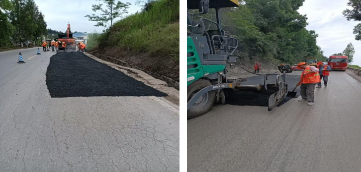 截至目前,共90余人次参与施工,出动铣刨机2台次,切割机6台次,摊铺机2台次、压路机6台次、轮式挖掘机4台次、货车6台次,累计完成道路修补面积约2800平方米。经过修补后,路面平整度和行车舒适性得到明显提升,道路病害得到有效治理,大大提高道路通行能力和安全性,为雨季公路养护工作打下坚实基础。