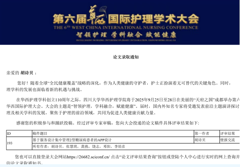近日,达川区人民医院护理研究生胡诗贝、护理部主任李培彦、副主任张慧琪等成员共同研究成果——《基于服务设计集中管理2型糖尿病患者的APP设计》,通过四川大学华西临床医学院(华西医院、华西护理学院)及四川西部医药技术转移中心专家评审,成功入选第六届华西国际护理学术大会壁报展示。 当前,在“全民健康覆盖”全球战略加速推进的背景下,护士作为健康守护者的核心作用日益凸显,护理学科同时面临着崭新的机遇与挑战。恰逢四川大学华西护理学院110周年华诞,以“世纪华西,百年护理”为主题的第六届华西国际护理学术大会将于2025年9月25日至28日在成都隆重召开,汇聚全球护理前沿课题。 本项研究以服务设计为核心,从用户需求出发,整合实体与非实体元素,开发相应的方法与工具,以构建有效、可行、高效且符合用户期望的服务,从而创造服务价值并实现价值共享。运用用户档案、人物志、用户流程图等服务设计方法,能够系统梳理和分析服务蓝图,识别并优化服务触点,精准响应用户需求。基于这一理念,构建院内外“虚拟病房”集中管理的“糖友”APP设计策略与实践,不仅充分考虑患者的年龄、文化程度、居住状况、视力及听力等个体特征,还能在服务系统中准确定位关键触点,助力服务提供者客观、高效地形成令用户满意的设计原型。 通过此次大会交流,团队深入了解了国内外护理研究热点,更清晰地认识到自身优势与不足。未来,达州市第三人民医院将继续深化临床实践与科研的融合,坚持以病人为中心的服务理念,持续推进医疗、教学、科研协同发展,致力建设医教研并重、均衡发展的现代化医院。