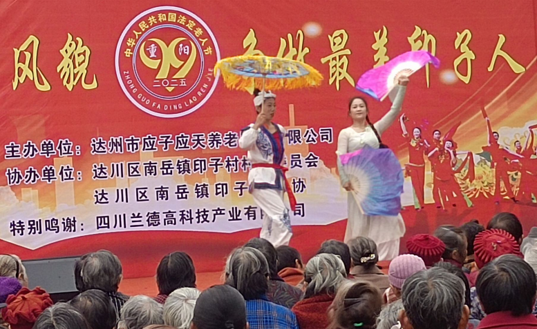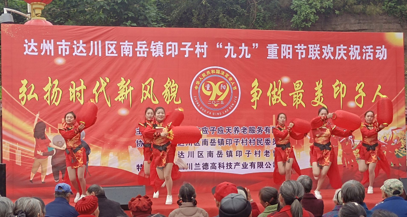 岁岁重阳添暖意,寸心敬老寄深情。为弘扬尊老敬老传统美德,营造孝亲爱老社会风尚,正值九九重阳,10月29日,达川区南岳镇印子村“两委”联合达州市应子应天养老服务有限公司、南岳镇印子村老年人协会、四川兰德高科技产业有限公司,共同举办“弘扬时代新风貌 争做最美印子人”主题敬老活动,以文艺演出、暖心慰问、敬老宴等形式,为村内老年人送上节日的祝福,传递浓浓温情。