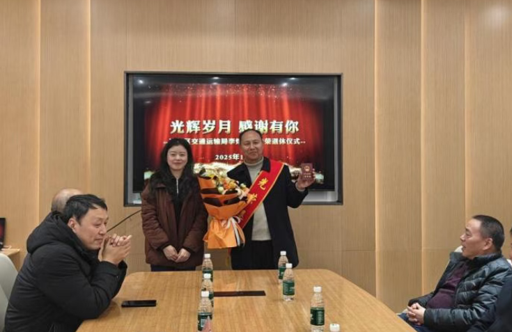 为深入贯彻习近平总书记关于老干部工作的重要指示精神,落实干部荣誉退休要求,增强干部退休的政治荣誉感和组织归属感,12月22日,达川区交通运输局为光荣退休的三级高级主办李炜同志举行荣誉退休仪式。局机关全体干部职工、下属单位负责人齐聚一堂,共同见证这一温馨而庄重的时刻。 荣光时刻:宣读决定与致敬荣休 仪式伊始,局机关党委书记朱雪花宣读了关于李炜同志退休的文件,为其佩戴“光荣退休”绶带、颁发《退休证》并献上鲜花祝福,以庄重仪式对这位奉献三十五载的老党员、老交通人传递组织关怀与崇高敬意。 岁月回响:光影铭记与初心倾诉 活动现场播放纪念短片,生动回顾李炜同志“用10年奉献雪域高原交通建设、21年深耕家乡交通事业、4年奋战乡村振兴基层”的光荣历程。历任办公室主任、法规股长、党组成员、驻村第一书记等岗位,他以实干担当服务大局,在交通建设中勇当先锋,在信访维稳中善解难题,临近退休主动请缨投身驻村帮扶,连续4年担任堡子镇杨家岩村驻村第一书记期间,始终牢记“建强基层党组织、推进强村富民、提升治理水平、为民办事服务”的职责,在田间地头继续践行着一名共产党员的为民初心。短片结束后,李炜同志分享了自己的工作经历和感悟,深情感恩组织培养与同事支持,表态将“有召必回、有问必答、有请必到”,持续关注支持达川交通事业,朴实真挚的话语赢得现场热烈掌声。 深情话别:同事情谊与真诚祝福 领导高度肯定李炜同志作为达川交通发展见证者、参与者、推动者的突出贡献。其他领导班子成员和同事代表也相继发言,一致赞誉李炜同志始终表里如一、忠诚可靠的政治品格,在工作中任劳任怨、细致扎实,在作风上真诚待人、躬身实干,是年轻干部成长的“引路人”,真诚希望李炜同志“常回家看看”,也衷心祝愿他退休生活幸福美满、安康顺遂。 此次仪式简朴庄重、温情洋溢,充分体现了组织对退休干部的尊重关爱,不仅让退休同志感受到深厚的职业荣光,也极大地激励了在职干部职工。区交通运输局将以此为契机,做好老干部工作,传承优良作风,凝聚奋进力量助推交通事业发展。