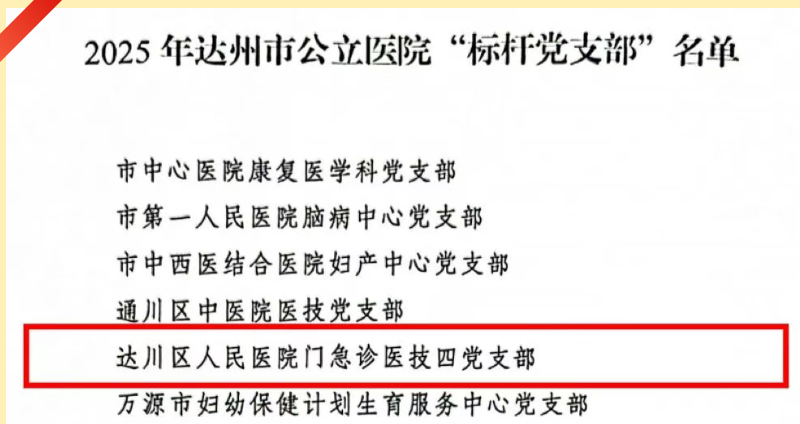 达川区人民医院门急诊医技四党支部荣膺2025年达州市公立医院“标杆党支部”称号