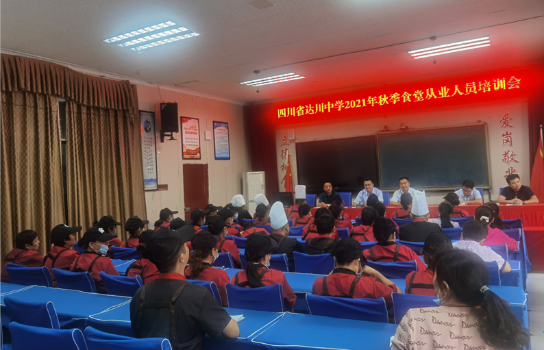四川先锋网消息(欧鑫)为进一步加强学校食堂食品卫生安全工作,不断提高学校食堂管理人员、从业人员卫生安全责任意识,强化规范操作,确保师生舌尖上的安全,8月29日下午,四川省达川中学华蜀校区组织食堂从业人员进行了食品安全培训。学校分管后勤工作的党委副书记邓智峰、后勤副主任欧鑫、食堂专职食品安全管理员杨学斌和所有从业人员参加。本次会议由后勤主任唐少雄主持。
