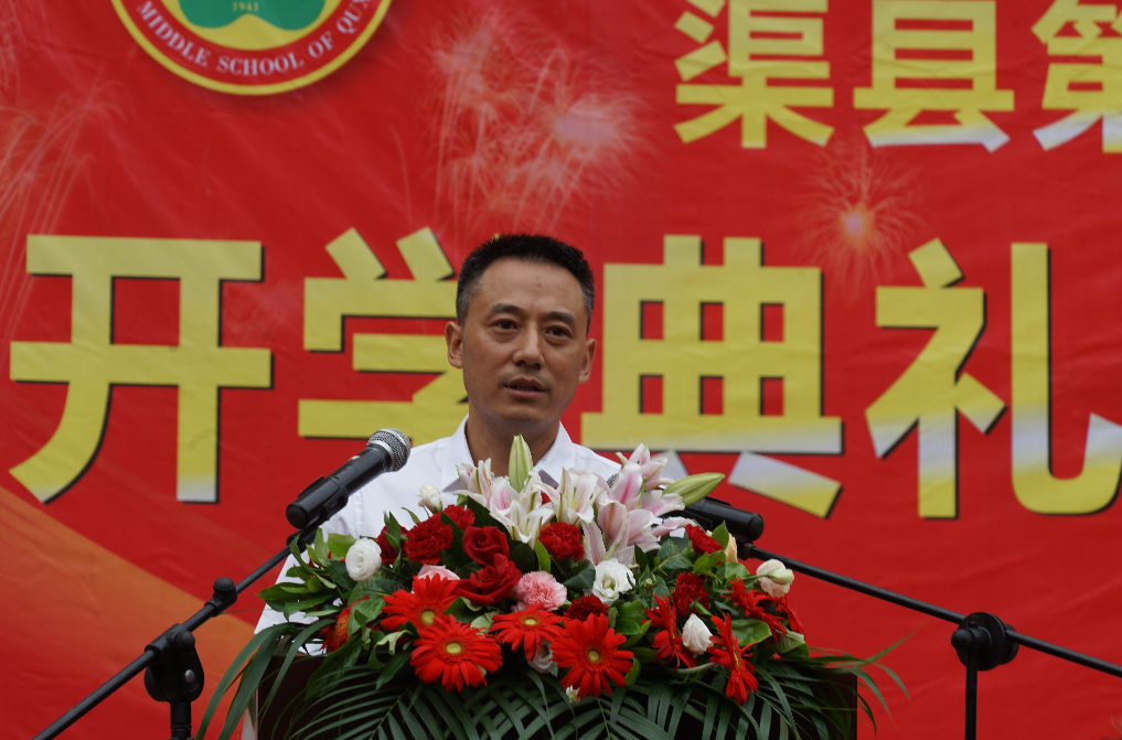 上午8:38分,升旗仪式后,渠县第二中学党委副书记、校长曹阳代表学校党委、行政向全体师生员工致辞,对1100余名高一新生、800余名初一新生表示热烈欢迎,对广大师生拼搏进取、奋勇争先的精神表达了衷心感谢,向广大教师送上了节日的问候与祝福。