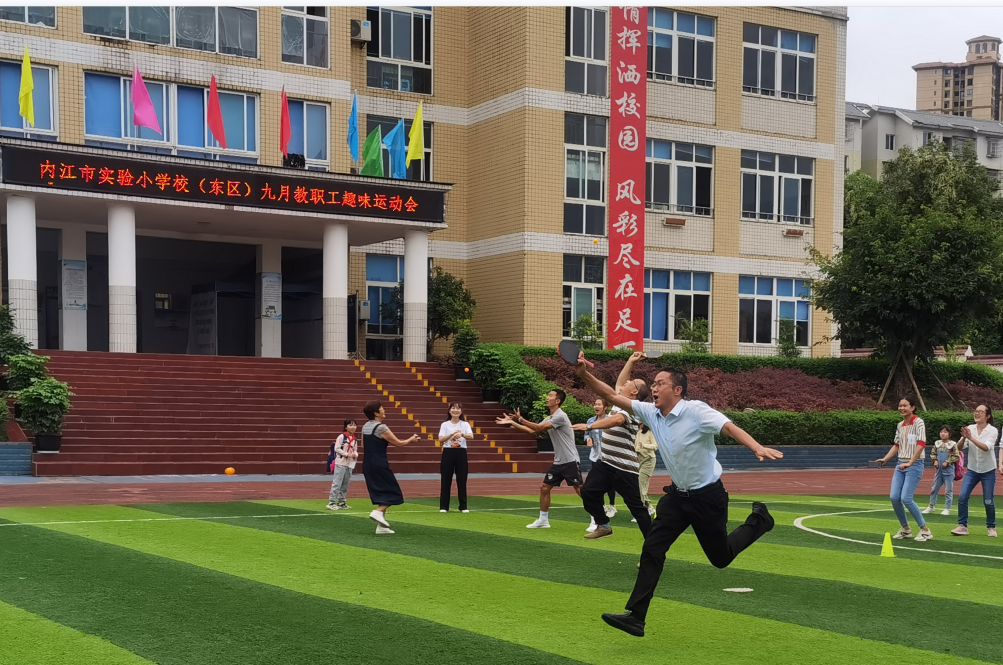 9月17日,内江市实验小学校(东区)操场上欢声笑语,下午放学后,学校全体教职工欢聚一起,举行了教职工趣味活动。学校为了调节老师们平日工作的压力,增进教师之间的友谊,增强团队凝聚力,丰富教师业余生活,营造全民健身的锻炼氛围,积极组织教职工参加活动。
