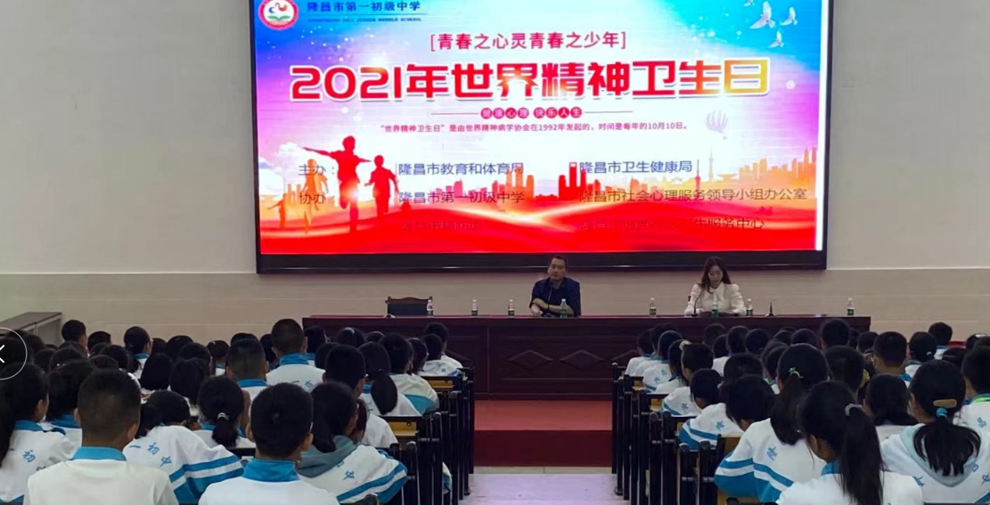 在世界精神卫生日到来之际,10月9日,隆昌市教体局在市第一初级中学开展“青春之心灵 青春之少年”心理健康教育讲座。