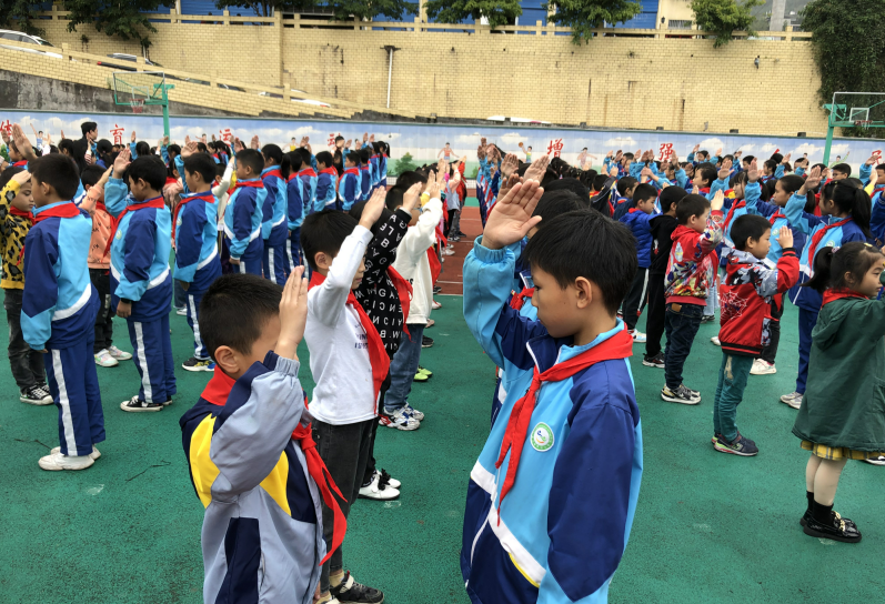 在建队日到来之际,巴中市南江县朝阳小学师生齐聚操场举行“红领巾 心向党”暨新队员入队仪式主题队日活动。