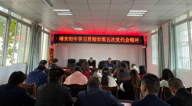 10月18日,靖安初级中学组织全体教职工学习贯彻达州市第五次党代会精神。