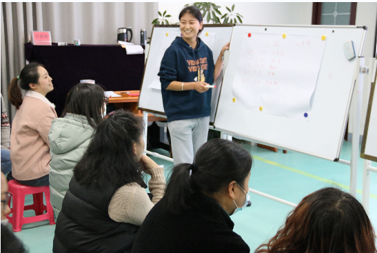 本期线下培训,授课老师为家长学员设置了6项有趣的体验活动,课堂气氛十分活跃。“李老师让我们从不同的游戏内容中去感悟科学的育幼知识,培训方式特别,学后印象深刻。”一位张姓家长告诉笔者。