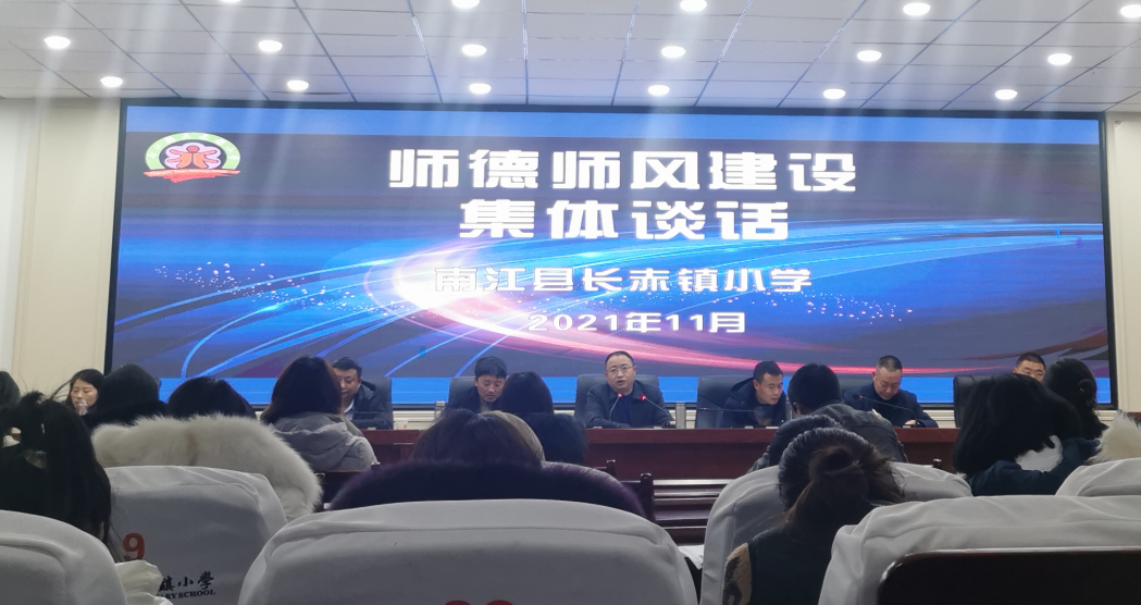 2021年11月21日下午五点,南江县长赤镇小学举行师德师风建设集体谈话会议。