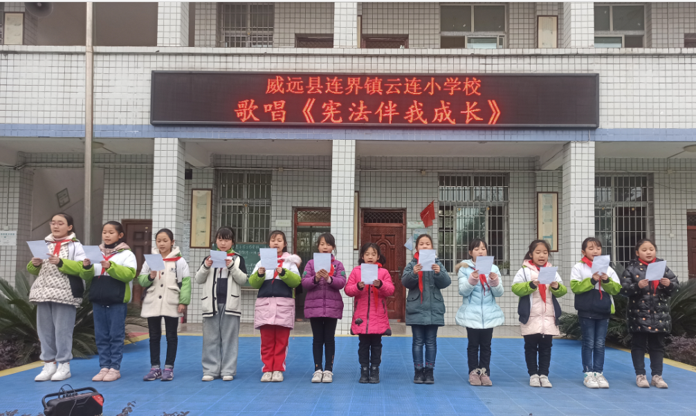 威远县连界镇云连小学校开展“以习近平法治思想为引领,深入学习宣传宪法”活动