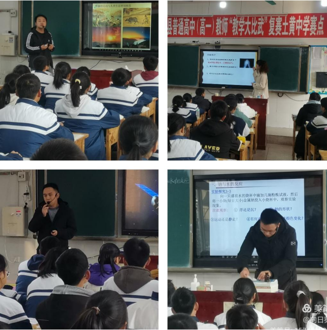 9日上午第三节, 涉及四门学科的八名参赛教师,走进土黄中学高一课堂,自选上课内容,展示教学风采。他们不愧是经过了初选的学科骨干,他们的教学基本功扎实,学科素养过硬,教学内容把握准确,教学方法多样,课堂氛围融洽,组织教学张驰有度。