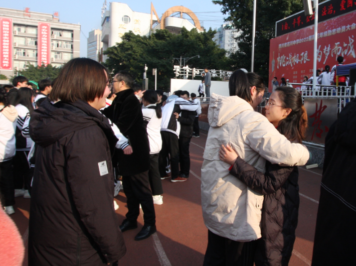 刘老师还结合一个个生动的生活实例,讲述关于二八定律的故事,引导学生牢记“坚持”的行动理念,学生们一声声的“坚持”,喊出了直面未来的勇气和对自我的坚信。在感恩环节,学生们弯腰九十度拜谢老师,并一一与老师深情拥抱,一声声“老师,您们辛苦了”“老师,我们永远感谢您”喊出了他们心中对老师无尽的感激之情,老师们饱含泪水,一句句鼓励,表达了对学子们深情的爱。