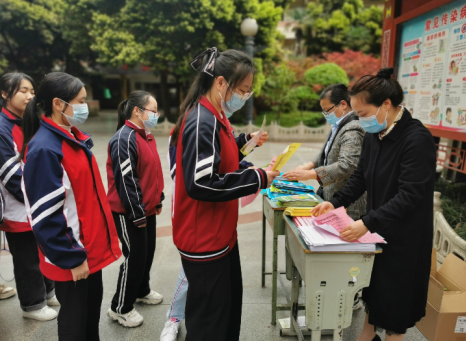 培训中,学生边听边记,并领取有关宣传资料千余份。