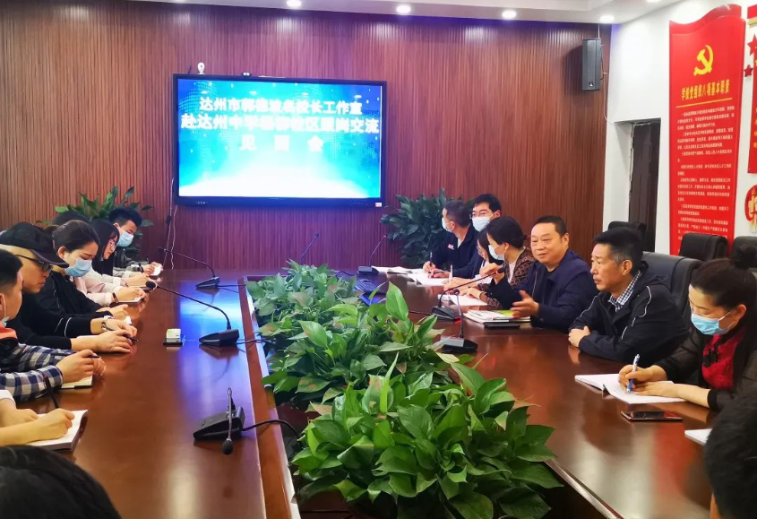 见面会上,杨柳校区党总支书记王敬安对跟岗教师的到来表示热情欢迎。杨柳校区执行校长李月全详细介绍了达州中学办学理念与特色,表示学校将竭力为跟岗教师服好务,希望学校的指导教师多与跟岗教师交流班级管理经验,互补长短、共同提高。
