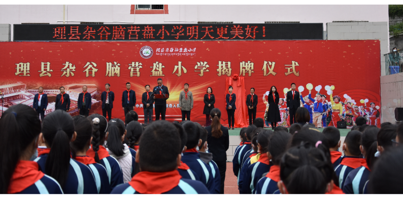 4月22日,在原营盘街小学隆重举行理县杂谷脑营盘小学揭牌仪式。理县县委书记金天强、县政协主席郑子强,县委副书记华尔白,县委副书记莫尚华,县委常委、常务副县长祝飞等县级领导出席了揭牌仪式。揭牌仪式由县委常委、副县长封有财主持。杂谷脑营盘小学师生参加了揭牌仪式。