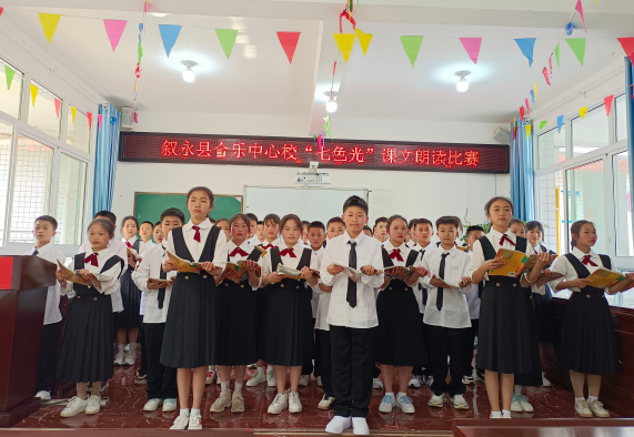 4月29日,叙永县合乐中心校开展“七色光”课文朗读比赛,经过初赛,最后六个班级的学生参加决赛。