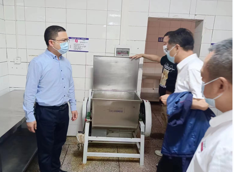 四川先锋网消息(姜莉/文 程超 刘静/图)为切实加强学校食堂食品卫生安全管理,近日,党委书记、校长胡知平一行到食堂进行常规检查,对“五关”(采购关、贮存关、加工关、供应关、消杀关)和“五餐制”(厨师试餐、校长陪餐、师生同餐、家长监餐、学生评餐)一一查检。