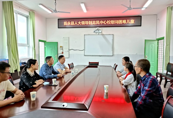 6月1日上午,叙永县人大常委会副主任余显中到龙凤镇中心小学校看望慰问家庭经济困难儿童。