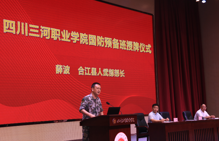 会上,薛波宣读了《泸州市人民政府征兵办公室关于建设四川三河职业学院“国防预备班”的批复》,并向学校授牌。薛波寄语全校青年学生,要提高政治站位,充分认清携笔从戎、报效祖国的重要意义;要充分认清成立国防预备班的重要意义,是落实国家人才战略,实施强军兴军的有力举措;要树立远大理想,树立家是最小国、国是千万家的家国情怀;要树立天下兴亡、匹夫有责的责任担当,要有居安思危,常备无患的忧患意识。