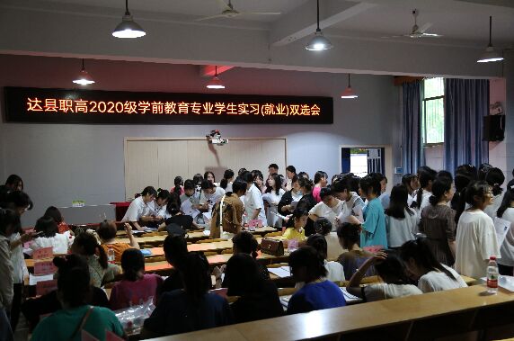6月23日上午,四川省达县职业高级中学与学前教育专业实习单位校企合作洽谈会、学前专业学生实习就业双选会在校举行,来自达州市主城区的30余所幼儿园参加此次活动。