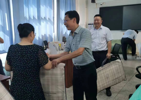 四川先锋网消息(赵小筌)7月13日上午,达川中学党委书记、校长代光兵,副校长孙仁成、邓智峰,党委副书记张莉萍走进毕业年级组,慰问一线教职工。