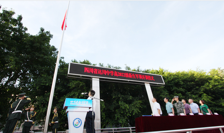 四川先锋网消息(杨华)8月14日上午,旭日初升,阳光明媚,达川区武装部领导、达川区教科局体卫艺股领导、学校中层以上领导,以及军训教官、高2022级全体班主任和学生共一千五百余人齐聚达川中学华蜀校区操场,举行四川省达川中学高2022级军训开训仪式,仪式由达川中学党委委员、纪委书记代旭东主持。