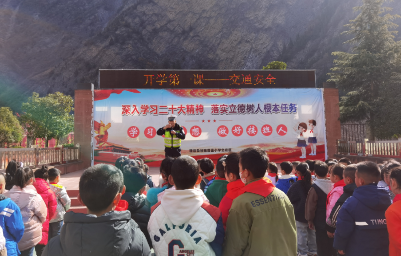 2月20日,理县杂谷脑营盘小学南校区全体师生在理县中学体育场举行开学典礼。典礼上,对上学期参加东方闻道网校举办的“江山多娇”诗画创作比赛、“旧物改造活动”以及对认真完成寒假作业的“作业之星”进行了表彰。随后,城关派出所警官为全体师生上了一堂有趣的法制课,重点对防溺水、防电信诈骗以及在交通、消防、安全知识等方面进行了讲解。镇医院的工作人员还给孩子们宣讲了传染病的预防知识。