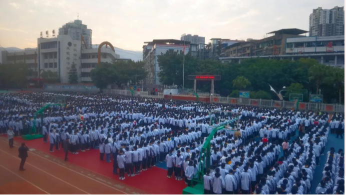 2月27日早晨,四川省达川中学同时在华蜀校区和三里校区举行“学雷锋精神,树时代新风”主题升旗仪式,全体教职工及学生参加仪式。