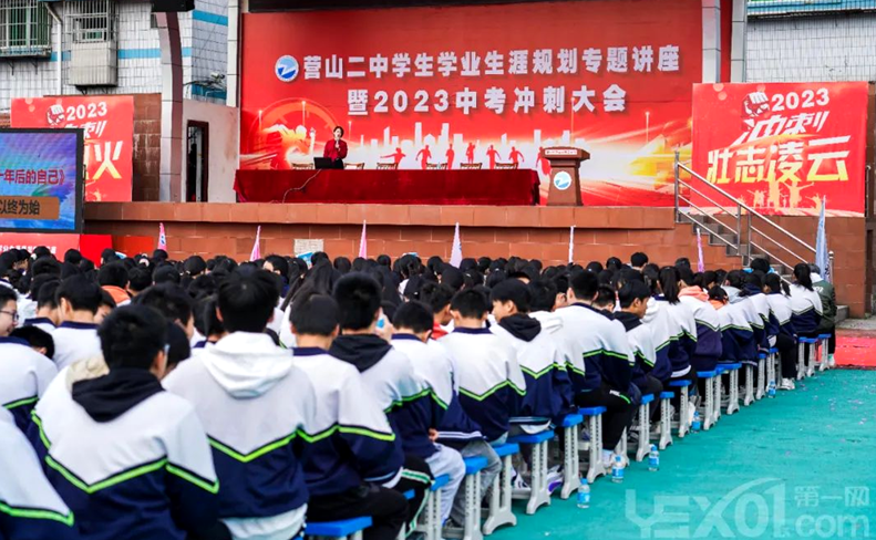 大会在铮铮誓言中推向了高潮,学校领导宣读优秀学生名单,并为受表彰学生颁奖。2022年中考,是该校首届初中毕业。优秀学子们个个青春洋溢、满面笑容地上台领奖。他们昂首挺胸,接过奖学金,目光中满载这他们的自豪与荣誉。激发了2023中考学子的昂扬斗志。