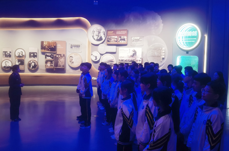 首先,大家参观了神剑馆。在讲解员生动的讲解中,同学们感悟着红色文化,了解张爱萍将军为国防科技和武器装备建设作出的重大贡献,深刻领悟“两弹一星”精神,积极接受革命传统教育。