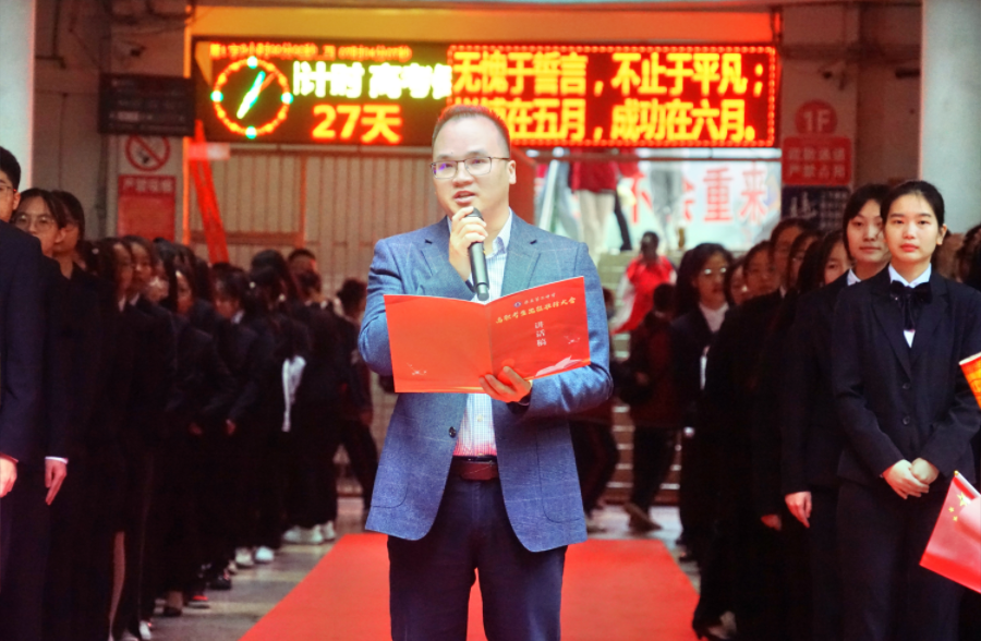 考生代表谢诗瑶作表态发言,表达了感恩之心和决胜信心。
