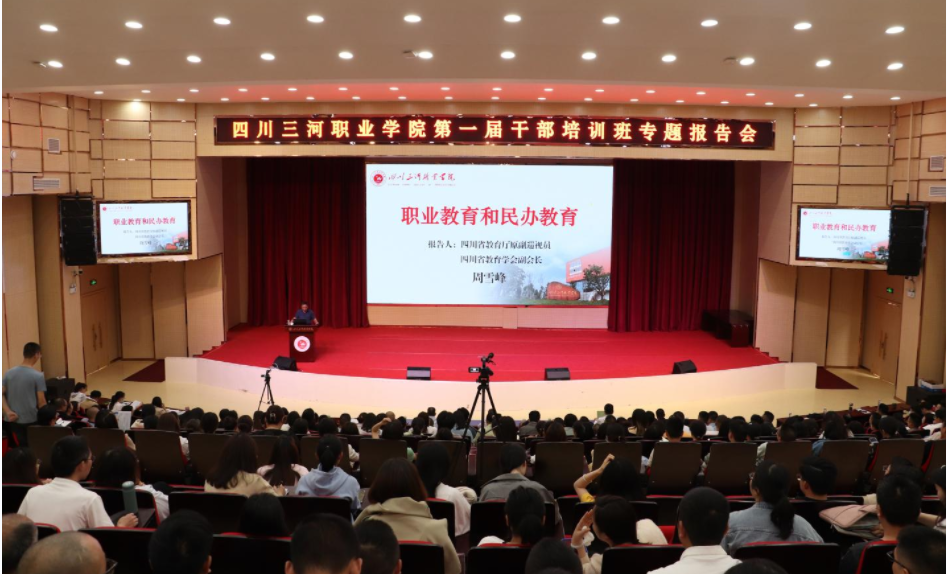 四川三河职业学院第一届干部培训班举行《职业教育和民办教育》专题报告会