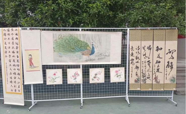 展演前,还举行了七、八年级分段文艺演出及师生书法、摄影、绘画等丰富多彩的艺术活动。